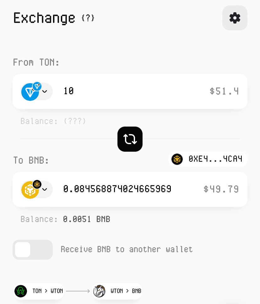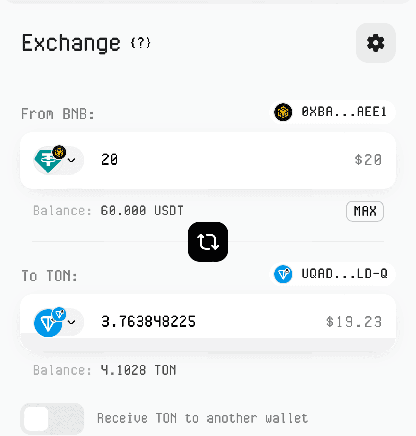 Swap any supported asset to or from TON without excessive gas fees or intermediaries.